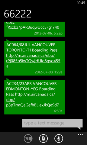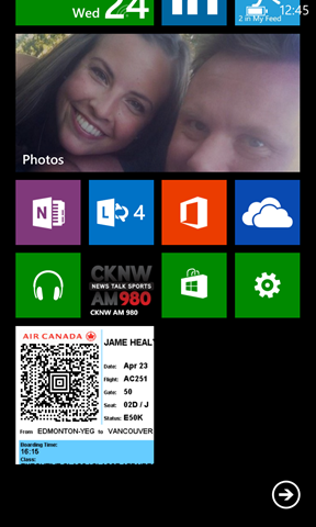But I tried something new that worked pretty well: essentially I was able to (on my Windows Phone) isolate the QR Code portion of my electronic boarding pass and pin it to my home screen. This way I can simply hand my phone to the agent, they scan and I go (although I’ve been stopped a few times by agents with, “what KIND of phone is that!? That’s cool!” as a result of this… which has caused it’s own delays!).